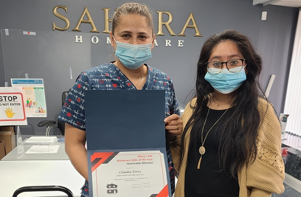 Homecare Aide Claudia Perezl (left) from Albany Park location received an
