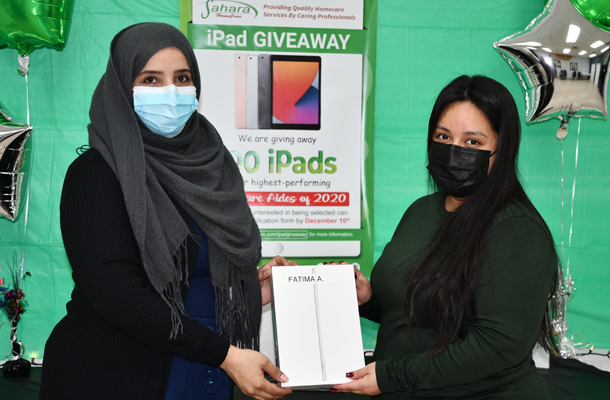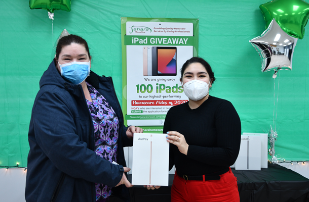 One hundred Homecare Aides from all of our 10 different locations were awarded iPads for excellent work performance in 2020.